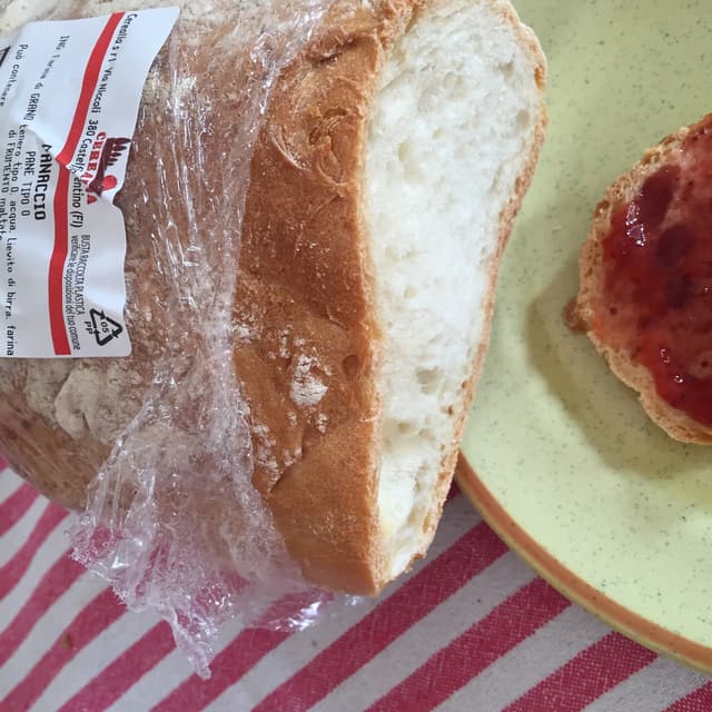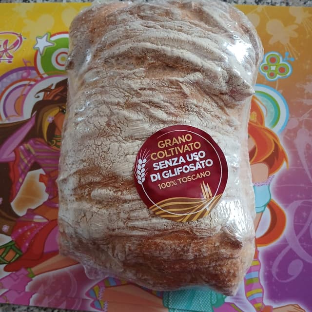 Gli ingredienti di questo pane toscano e quindi non salato, sono farina di grano tenero tipo 0, acqua, lievito di birra e farina di frumento maltato. È contenuto in una busta riciclabile nella plastica. Buon sapore. Inoltre viene prodotto utilizzando grano coltivato senza uso di glifosato. #mangiarevegano #rifugiomiletta #santuariocapraliberatutti.