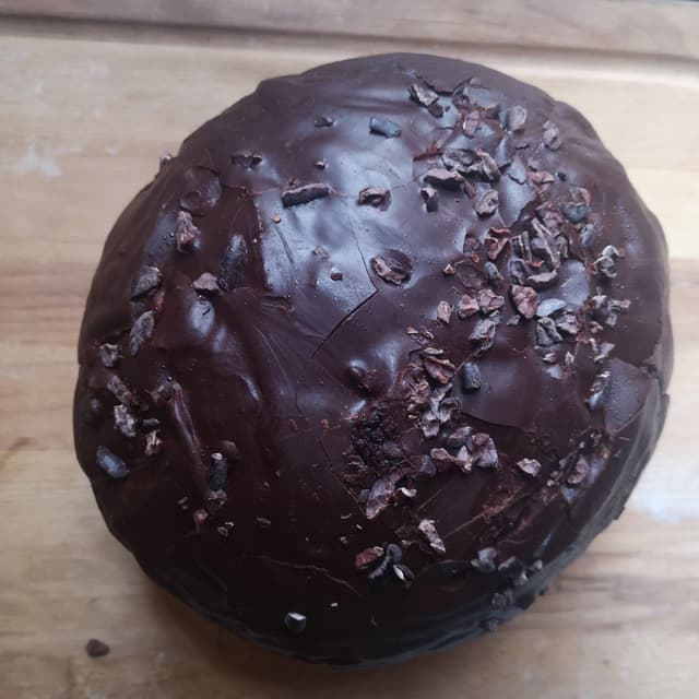 Panettone al cioccolato con piccoli pezzi di amarena al posto dei canditi. Sapore simile ad un “pan gocciolo”, le amarene si se sentono poco.