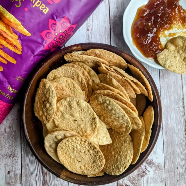 Crispy, good fiber and protein, not too salty, not as delicious as the papadums at Samosa House!
