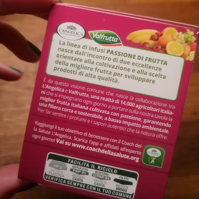 mirtill3 years agoSee TranslationInfuso ai frutti di bosco in collaborazione con Valfrutta, buono e profumato. Packaging totalmente in carta (tranne purtroppo per il classico cellophane intorno).0