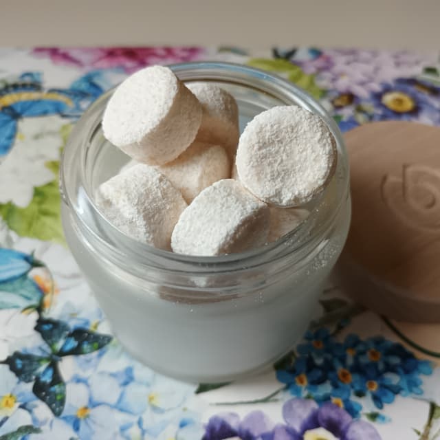 Ho acquistato queste pastiglie per vedere se potevano essere la soluzione per togliere dal wc un alone tipo color ruggine che lascia l’acqua del nostro acquedotto, e devo dire che sta davvero aiutando! Una volta pulito il wc, metto una pastiglia e la lascio agire fino a quando non si scioglie e utilizzo dopo utilizzo, sta evitando che questo alone diventi sempre più scuro, togliendo anche quello che già c’era! Per comodità le ho messe in un barattolino di plastica di recupero.