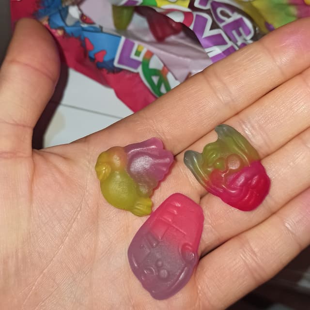 🍬Each gummy has 3 flavours. They are shaped as doves, flowers, cars, eyes, yin-yang, #hippie dudes and #peace signs.