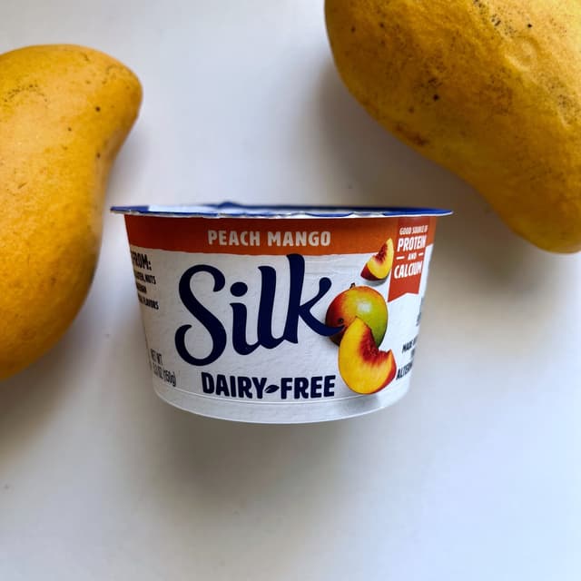 The #peach #mango yogurt is divine! All 3 Silk yogurts I tried recently are delicious but I think the vanilla is my favorite! #veganisnotscary #veganin2024 #ditchdairy #yogurt #veganyogurt #teamsoy #soy