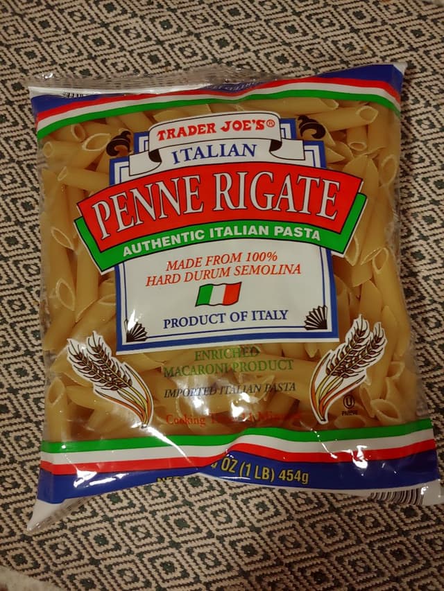 This is a good penne very reasonable at Trader Joe’s . I make a garlic and corn pasta that I really like it has about two whole garlic bulbs and corn olive oil , vegan butter and nooch. I love garlic 🧄 and this is a comfort food for me . #traderjoes #penne