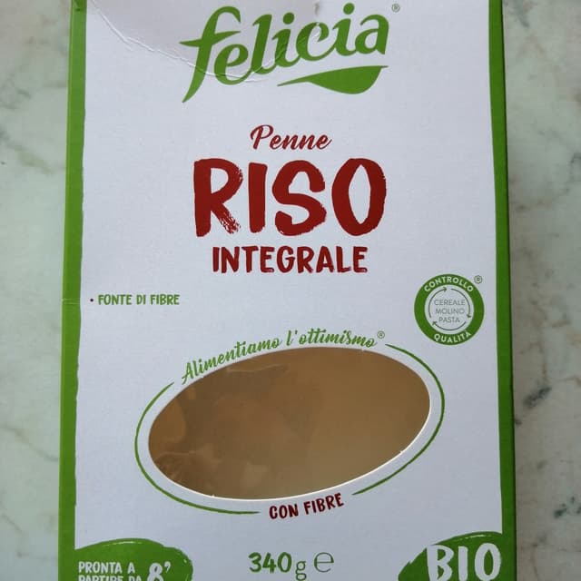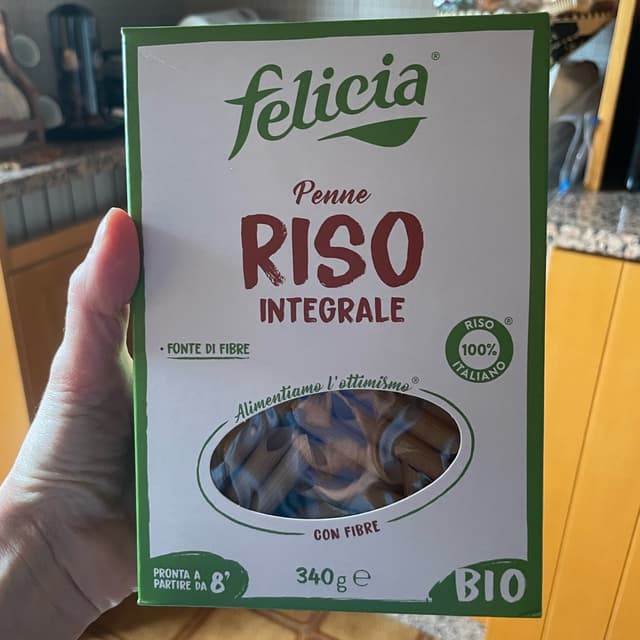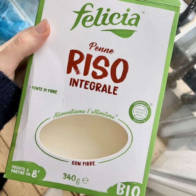 Penne rigate di riso integrale molto buone. Adoro la pasta Felicia, senza dubbio la migliore senza glutine in termini di qualità. Costo leggermente alto ma accettabile data la qualità degli ingredienti, in questo caso 100% farina di riso integrale. Acquistata da Esselunga.
