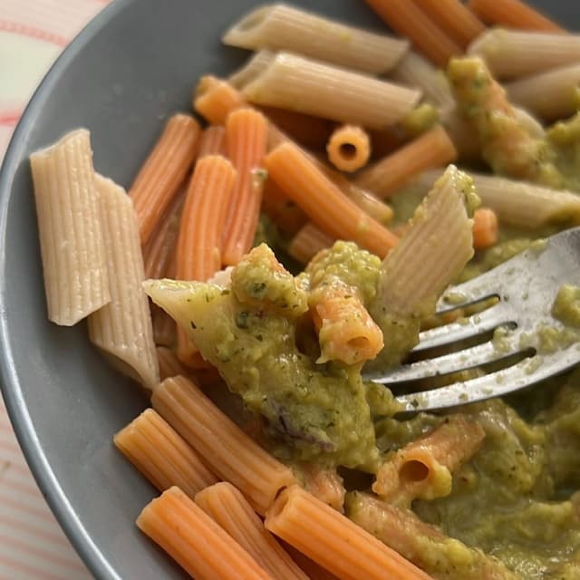 Questa pasta è davvero ottima! L’ho presa sia perché sto cercando di integrare legumi e cereali nella pasta quando la porto al lavoro quindi un giorno vado di piselli, un giorno di lenticchie … oggi questa! A me questa è piaciuta tantissimo perché, sarà che l’ho tolta dall’acqua appena scattati gli 8 minuti scritti sulla confezione, è rimasta bella al dente, quasi che un minuto in più ci stava e a me piace al dente. Altre paste scuociono pure seguendo i tempi di cottura indicati sulla confezione! 🤦🏻♀️ l’ho condita col pesto di cavolo riccio della Polli ed era davvero ottima! Questa si mi sento di consigliarvela.