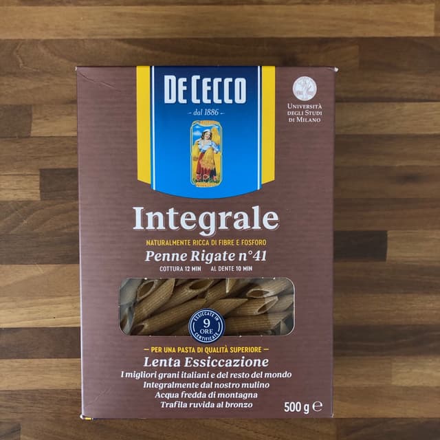 Penne integrali di buona qualità, realizzate con grano italiano.