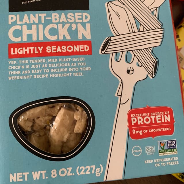• Is Plant-Based Chick’n Lightly Seasoned vegan? Yes! Plant-Based Chick’n Lightly Seasoned is certified vegan by the abillion communityVEGAN