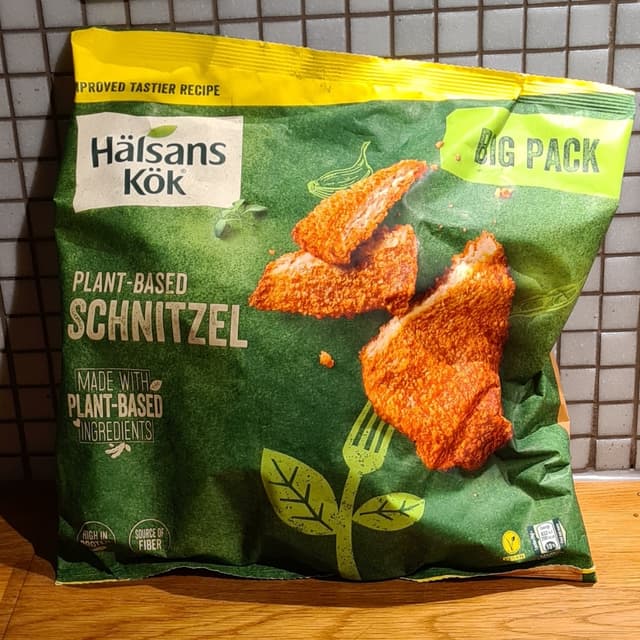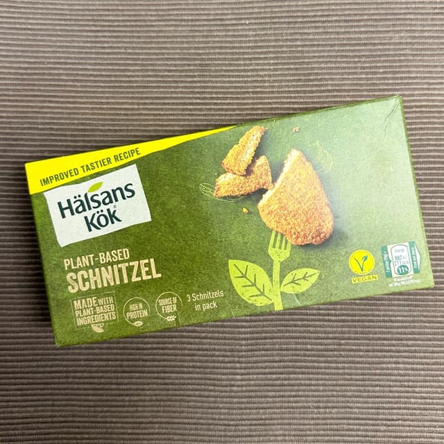 These schnitzels are very tasty! No distinctive spices that are noticeable, just a mild yummy flavour that pairs nicely with most meals. Spices used are paprika, tumeric, garlic powder, onion powder and natural flavourings. They are based on #soy protein and have a pretty nice texture! It is soft but with decent structure. They aren’t ‘stringy’ like some of the more realistic #chicken alternatives are. It is more finely ground and the texture of the fillets are similar to their nuggets, for a nugget I find the texture realistic. The breadcrumb coating is great, it is nice and #crunchy and on the dry side which is something I personally enjoy. I prefer to bake it for longer than the recommended time to get it extra crispy. The packaging is #plasticfree and made from cardboard that is #recyclable. Small heads up that they also make a #schnitzel that contains eggs, the packaging is nearly identical with the same picture. The product is #palmoilfree and each pack contains 3 #schnitzels. 💵~47 NOK at Coop, pretty good price and it is one of the most accessible schnitzels as well. Have purchased these many times and I like them a lot, I recommend them😊 #mockmeat #veganchicken #lazyvegan #veganjunkfood #fakemeat