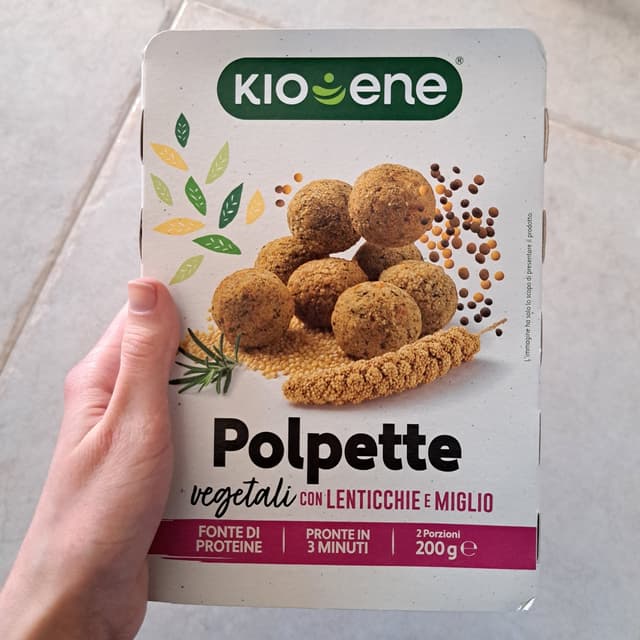 Polpette di lenticchie e miglio, buone dai! La panatura è buona, il retrogusto mi ricorda un po' gli altri burger vegetali della Kione. Sono curiosa di provarle nel sugo!