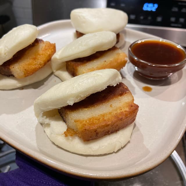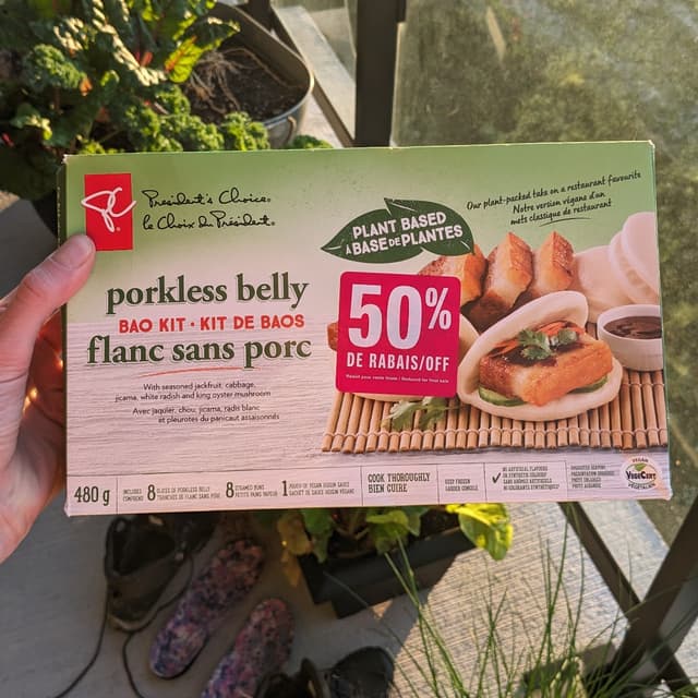 These finally went on super crazy sale ($5 AND 50% off) like I thought they would so I got two boxes!! #veganonabudget They are quite high fat and highly processed and low in protein, so not very healthy. They do taste really good though. The buns are fluffy even after just microwaving them, and the porkless belly is crispy but tender just like real pork belly. It's really cool how well they simulated pork belly. The sauce is sweet and salty. We added cucumber and avocado to the buns and it was a good lunch. #bao #veganbaobuns #porklessbelly #porklessbao #veganreadymeal
