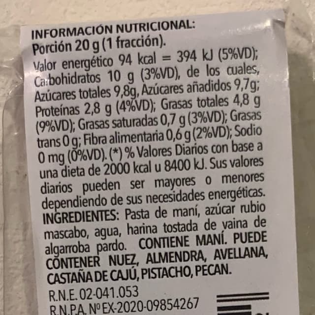 Postre a base de pasta de mani, azucar rubio mascabo y harina de algarroba
