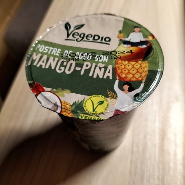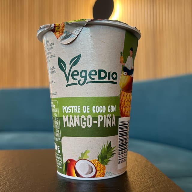 #coconut yogurt with #mango and #pineapple - it was ok but TOO sweet. Ok that they call it “postre” (dessert) rather than yogurt, but ugh that’s too much sugar. I wouldn’t buy it again.