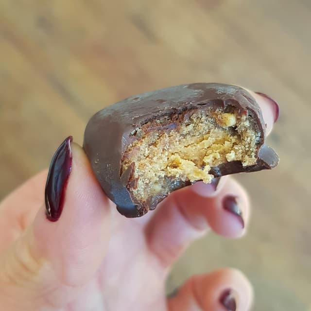 Buono! L'ho preferito rispetto a quello al lampone. Il burro d'arachidi all'interno è cremoso e saporito, si sente anche una punta di sale. Per me è uno snack goloso e soddisfacente. E dato che sono due bocconcini (anziché una barretta unica) non stanca: ne ho mangiato uno come snack al lavoro e l'altro come spuntino a casa.