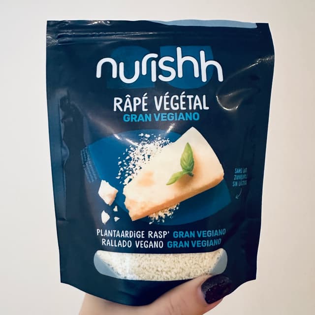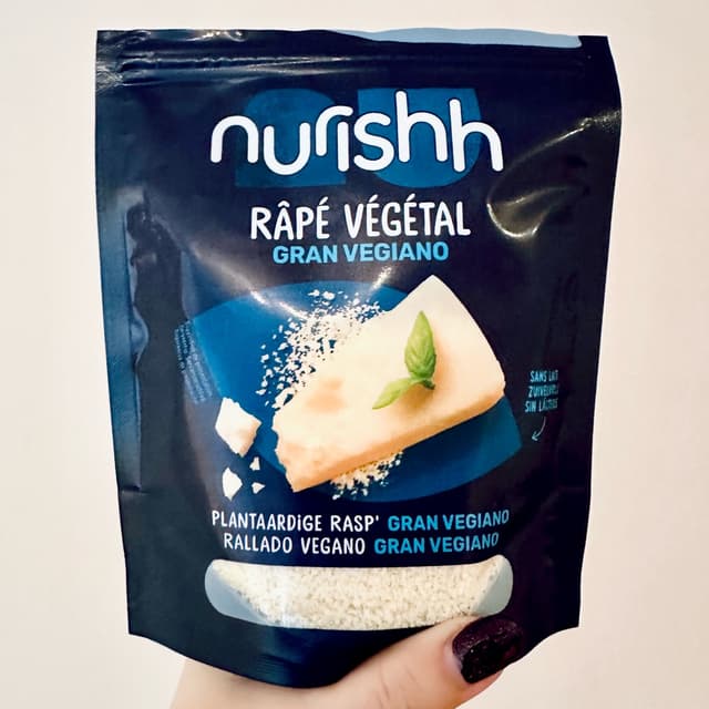 Queso rallado vegano Gran Vegiano, ideal para pasta y pizza. Súper buen sabor