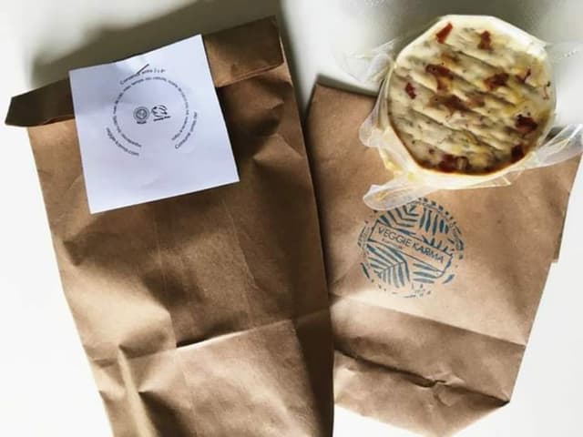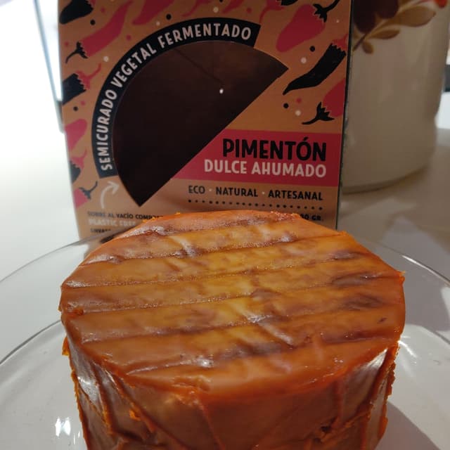 Queso vegano al pimentón, gran sabor, comprado en el Vegfest barcelona