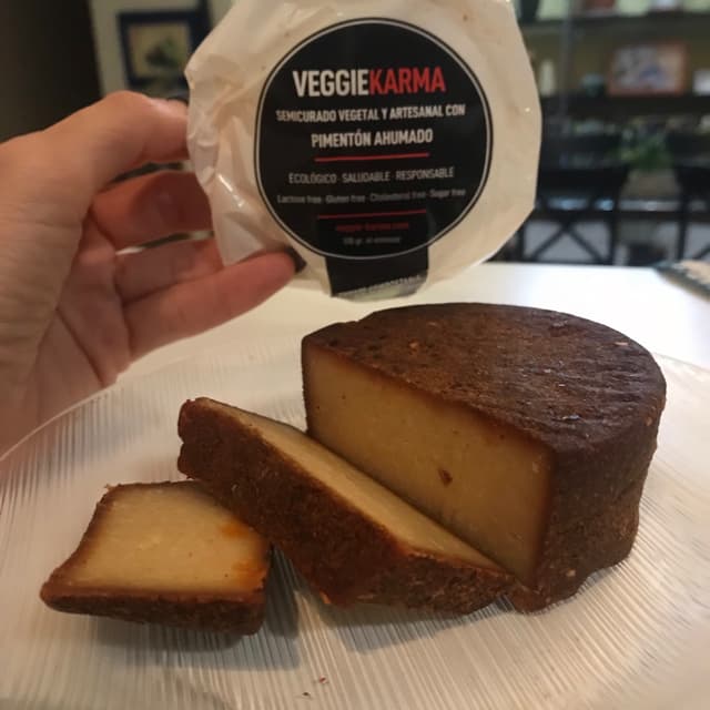 Queso vegetal semicurado a base de altramuces, anacardos y leche de arroz. Muy muy bueno. Gran sabor y consistencia, el pimentón dulce ahumado le da el toque especial. Ingredientes procedentes de agricultura ecológica #bio y algunos incluso de comercio justo ¿Matar y torturar para comer queso? No, gracias. #vegetarianismisnotcool https://www.dairy-truth.com/ https://youtu.be/Pg_koxL7RVA #dairyisscary #dairyismurder #sinoesveganonoescomida