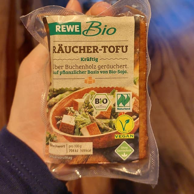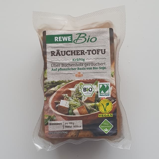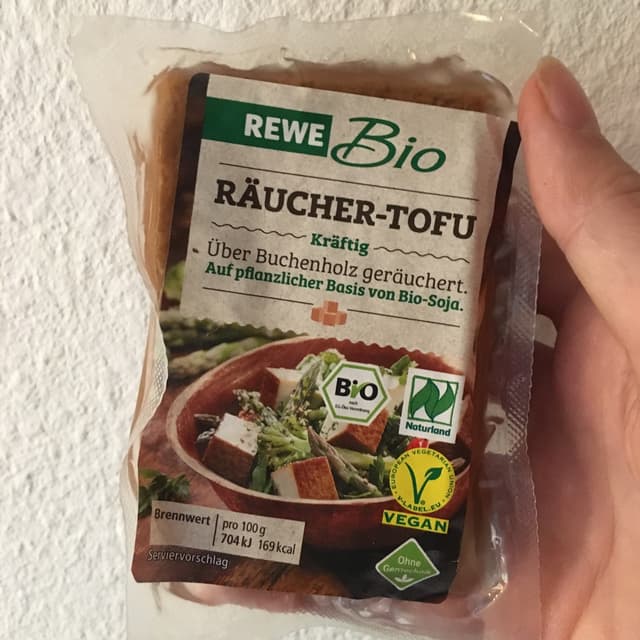 i am not the biggest fan of Räuchertofu but i needed it for a certain dish and it works well. loved the texture of this one since it's firm without being brittle. price is very fair compared to other (well-known) branches: paid 2,19€/400g (->6,26€/kg) this product is organic, sugarfree, contains gluten (wheat) and of course soy. #smokedtofu #organictofu #rewe #veganbasics #vegangermany