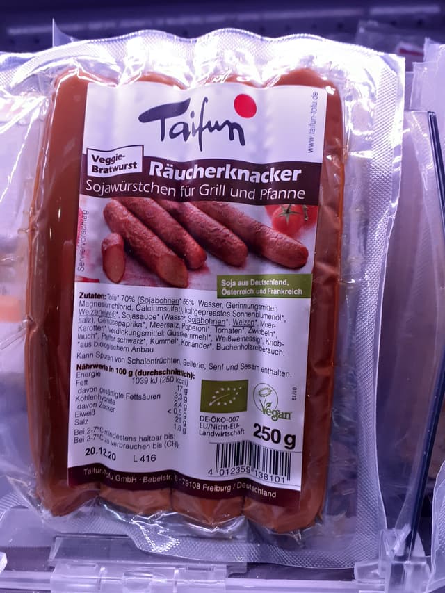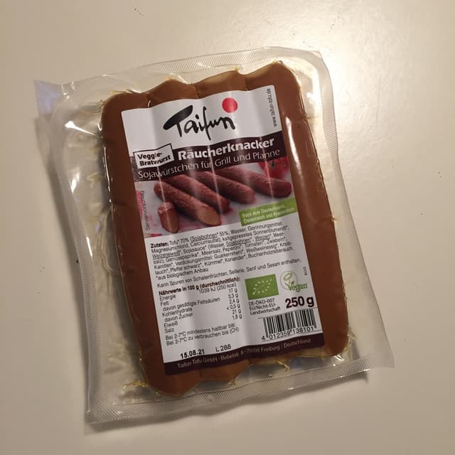 The smoked crackers are made from smoked tofu. The consistency and taste are much better than the barbecue crackers made from natural tofu. However, the consistency is not 100% reminiscent of bratwurst, but it is convincing. Mustard goes very well with it. #veganbbq #veganmeat #tofulover #smokedtofu