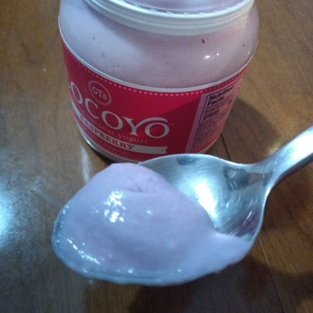 Cocoyo is a yogurt made from raw young coconut thats lightly sweetened with juices and stevia. I didn't even notice the stevia taste which I usually do not like. It comes in a glass jar. This is a great yogurt. I really enjoyed the taste and love the quality ingredients.