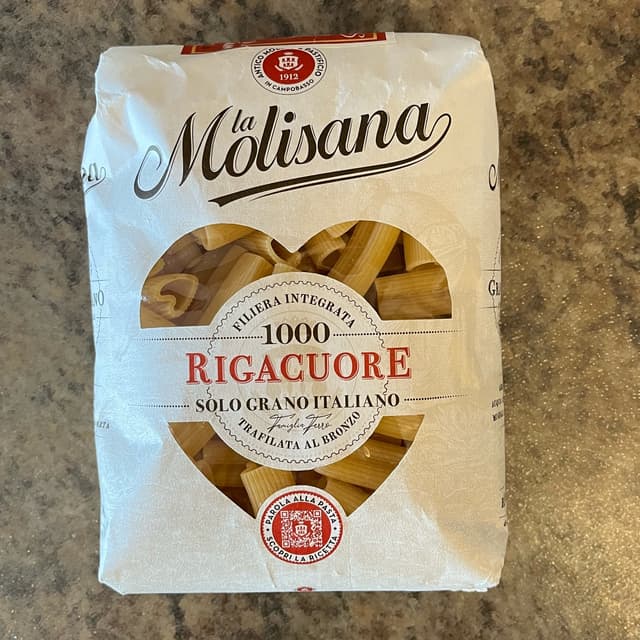 #vegan #veganisnotscary #veganfortheanimals #rigacuore #lamolisana #veganpasta #highinprotein #productofitaly I received this complimentary package of La Molisana Rigacuore pasta with my February monthly wine shipment from Colaneri Estate Winery. I had forgotten about it until now. It was a very appropriate gift for Valentine’s Day. Note that the rigatoni pasta is heart-shaped. Hence the name: Rigatoni + Cuore (Italian for “heart”) = Rigacuore. The pasta doesn’t taste any differently from any other pasta (at least, I don’t think so), but it still tasted great. I cooked it al dente. I love its unique shape too. The pasta held my vegan Bolognese sauce wonderfully. The ‘ground beef’ was Yves Cuisine Veggie Ground. One fifth of the bag (100 grams of the 500 gram package) provides 14 grams of protein! The Rigacuore is also low in sodium. I assume this bag was imported from Italy as the entire package is written in Italian; there’s no English or French. But if I find this pasta in the store, I’d definitely buy it.
