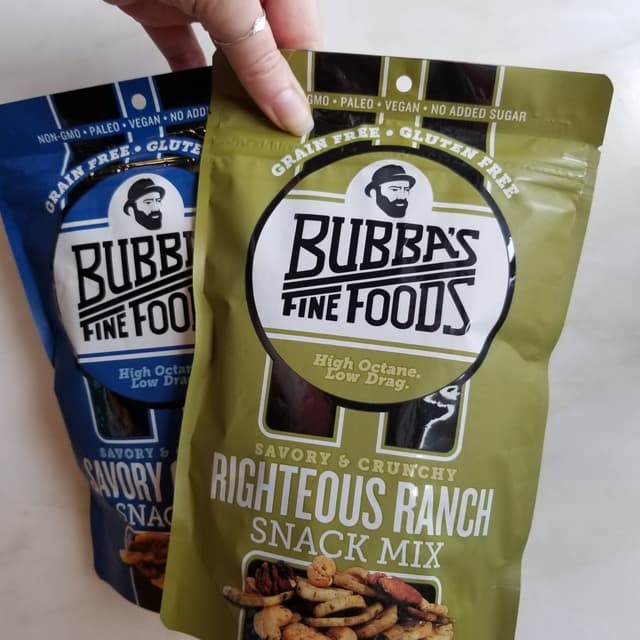 One of the most satisfying snacks I have found! Bubba's makes a variety of satisfying savory snack mixes that are seasoned well. Grain free + Gluten Free too!