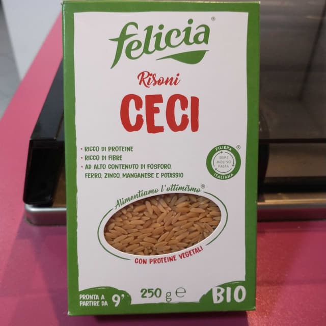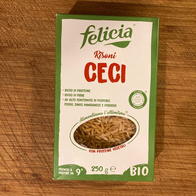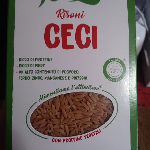 Buonissima pasta ai ceci fatta a forma di risone! La si può mangiare anche con la pasta in brodo poiché il formato è adatto. Buona anche condita con un filo d'olio e lievito alimentare disattivato. 👍🏻