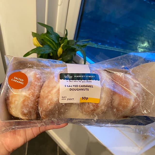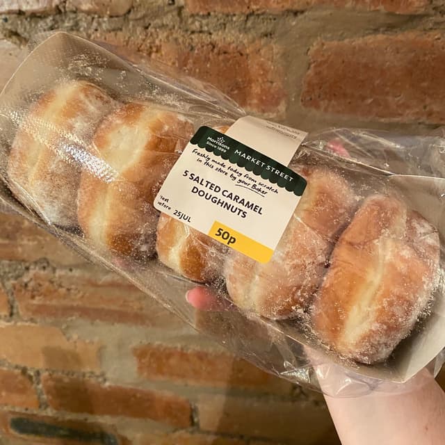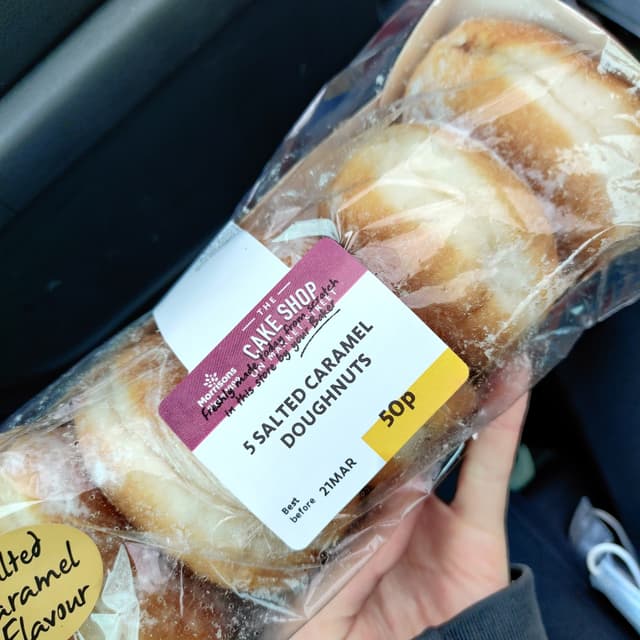 I was at Morrisons to get the new Fruit salad doughnut but ended up getting the Morrisons 5 Salted Caramel Doughnuts as well because I don't often see it at my regular Morrisons. The caramel filling inside was thick and gooey but I couldn't quite taste the salty part but it was still good if you just think of it as a caramel donut. It works out 10p a doughnut which is pretty good. I know it sounds weird but if you microwave it for 10 seconds, it warms up the doughnut so it was not so hard and the caramel filling is warm and delicious.