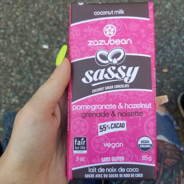 Horrible pic, I know! 😬 We already ate most of this chocolate bar before I took a pic. I LOVE the chocolate made my Zazubean, a fair-trade, organic company founded by women and local to BC. “Sassy” is probably one of my fav flavours, but it’s hard to decide. #abillionlove