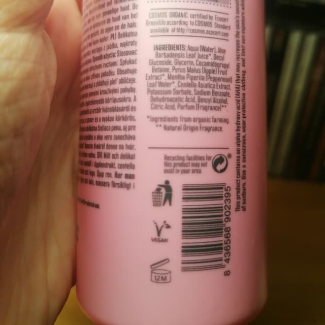 Schiuma detergente morbida e delicata, con estratto di mela, centella asiatica e aloe vera (contiene AHA). L'odore non mi fa impazzire ma tutto sommato penso che sia un buon prodotto con un buon rapporto qualità prezzo (pagato poco meno di €8). Packaging eco-friendly.