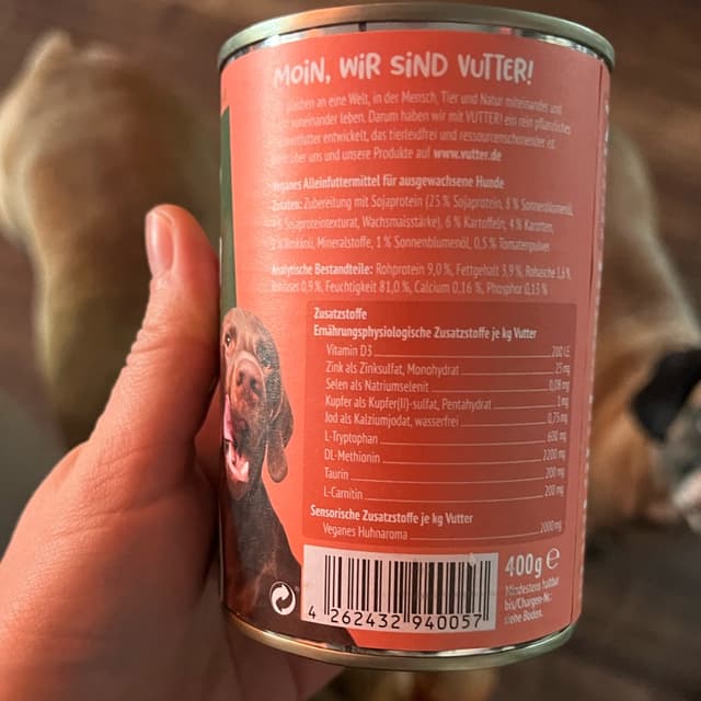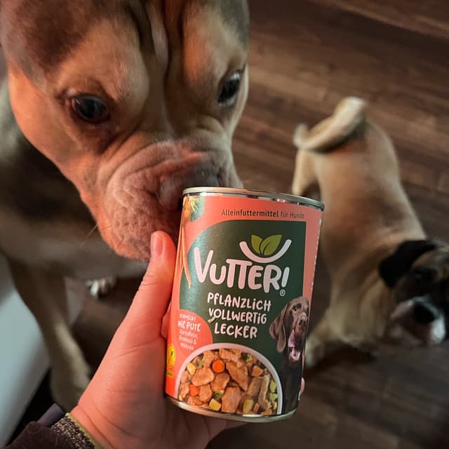 Wir haben ein neues veganes (und glutenfreies) Hundefutter gefunden! 🌱 Es soll, laut Aufschrift, genau wie Pute schmecken. Beim Öffnen riecht es eher ein bisschen nach deftigem Eintopf/Brühe. Die Hunde fanden es aber auf jeden Fall sehr gut und haben noch lange im Napf geschlabbert, obwohl er schon leer war. 😅 Ich würde es wieder kaufen. #petfood #dogsofabillion #dogsofabv