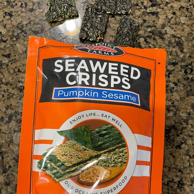 This seaweed snack is very good. It’s made of two layers of seaweed and a filling of sesame and pumpkin seeds. Ingredients are few and completely natural. It’s gluten free #glutenfree #vegansnacks #seaweedchips