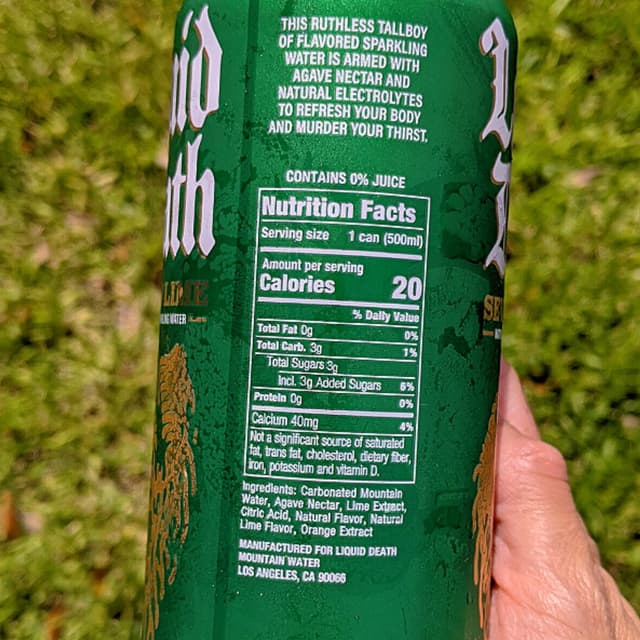 I truly love the carbonation ratio on this sparkling water and even though it's refreshing and tastes delicious, I try not to consume sparkling water with calories. 20 calories per can is miniscule compared to other brands and even though this tastes yummy, I prefer the classic sparkling water instead 💦 Overall, this tastes delicious and it kind of reminds me of " Sprite " without the syrup taste. Yes, I recommend it 😋 Instagram: LiquidDeath Website: ⤵️ https://liquiddeath.com/products/severed-lime-12-pack