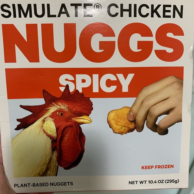• Is Simulate Chicken Nuggs Spicy vegan? Yes! Simulate Chicken Nuggs Spicy is certified vegan by the abillion communityVEGAN