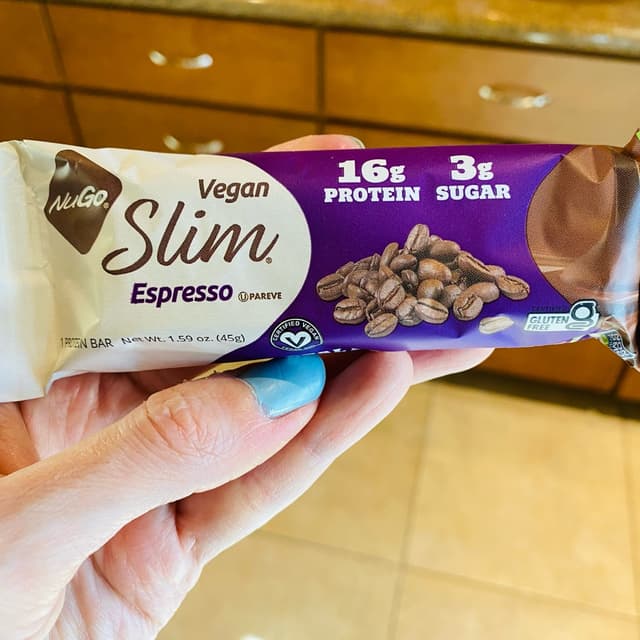 NuGo bars are always good! (All NuGo Dark are vegan but not all original and slim versions are so make sure to read packaging.). This bar has a nice flavor and is satisfying. It is a little dry but overall has a nice texture more like a candy bar then typical protein bar. I prefer the mint and peanut butter flavors to this one but this one is good and I’ll be happy to enjoy the 2nd one I received in the vegan slim bar variety pack. This bar has 16 grams of protein. NuGo bars use ethically sourced chocolate via the FEP chocolate list and do not use palm oil. If you like NuGo bars I highly recommend signing up for their mailing list as they occasionally have great deals. I was able to score the variety pack for 40% off and free shipping. #nugo #proteinbar #veganproteinbar #ethicallysourced