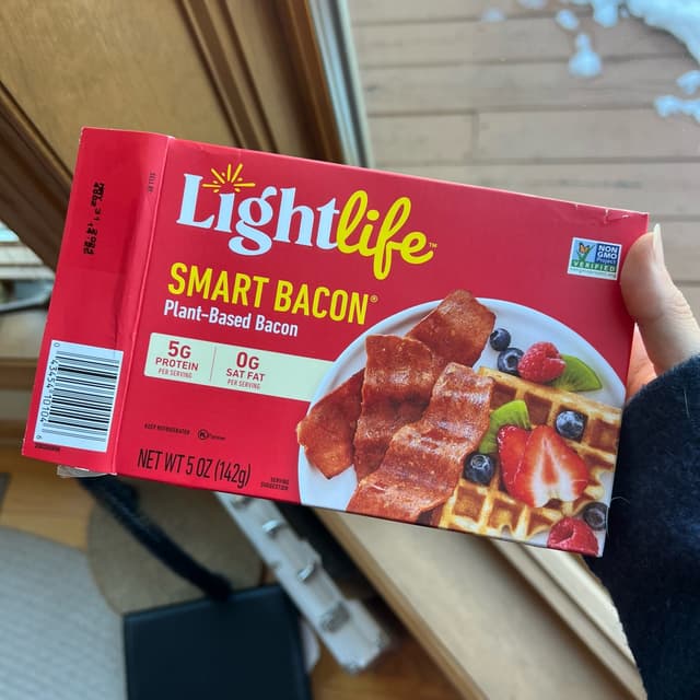 Smart Bacon is a plant-based bacon alternative made from 100% plant-based ingredients. It has a crispy texture and savory smoky flavor that is similar to traditional bacon. This healthier and eco-friendly option is perfect for adding a delicious touch to your favorite dishes, such as BLT sandwiches, breakfast burritos, or simply enjoying it on its own. Some customers have reported that it satisfies their cravings for the real thing.