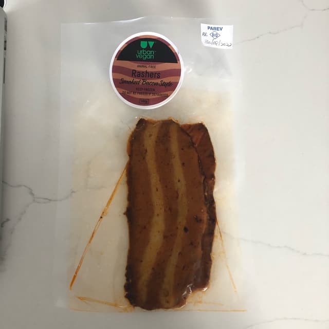 These smoked bacon style rashers are made from plant-based ingredients and offer a delicious taste of bacon without any animal products. They have a crispy texture and a smoky flavor that will satisfy your cravings for the real thing. These rashers are perfect for adding to your sandwiches, burgers, or as a side dish for your breakfast. Made with care and using only the finest ingredients, they are a must-try for any vegan or anyone looking to reduce their meat consumption. According to reviews, they have a great taste and are a perfect substitute for traditional bacon.