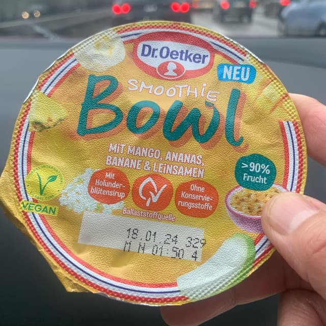 Smoothie Bowl Mango, Ananas, Banane & Leinsame