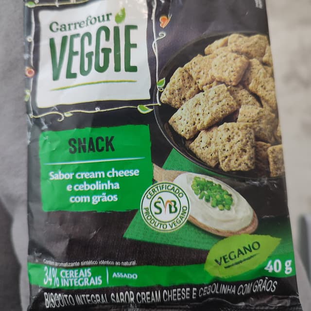 Snack sabor cream cheese e cebolinha e totalmente vegano Produto da marca Carrefour. 🏪🌃 #santuariovaledarainha