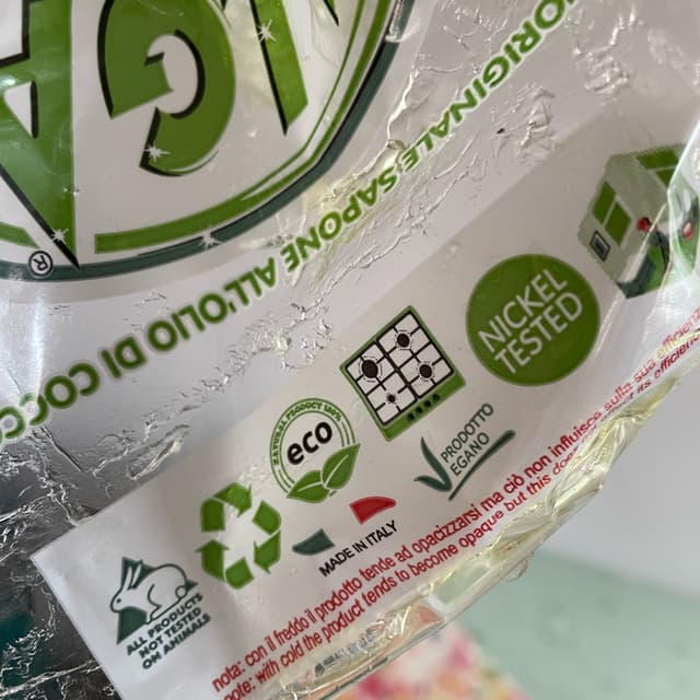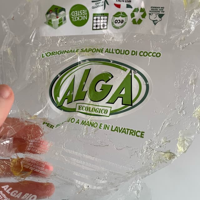 Purtroppo fotografato dopo che l’ho tolto dalla confezione per fare dei pallini che ho messo in un barattolo ermetico come ho visto fare ad una influencer 🤣 ha una consistenza molto gommosa e anche appiccicosa ma si appallottola facilmente. Era la prima volta che lo usavo e ci ho lavato i piatti e fatto il bucato in lavatrice. C’è da dire che anche poco sgrassa molto!! Mentre per l lavatrice lava bene solo che non avendo profumazione i panni appunto non profumano. Il che non è necessariamente un male. Credo che sia un prodotto molto valido
