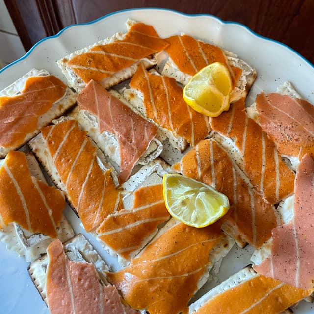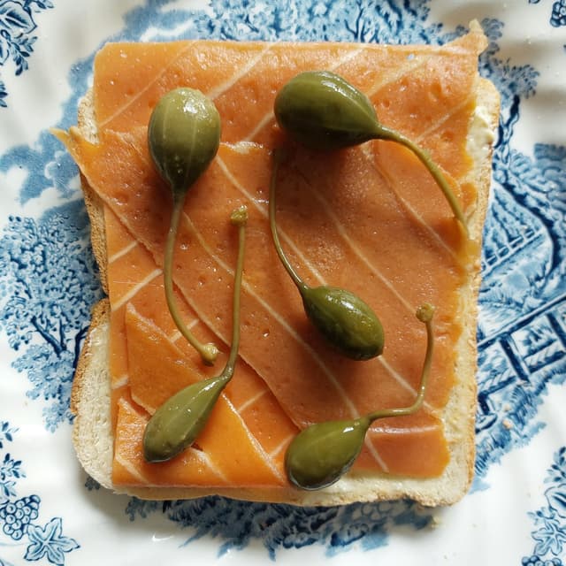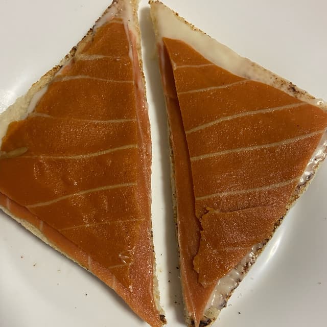 Con questa alternativa vegetale al sapore di salmone abbiamo farcito dei panini. Molto buoni.