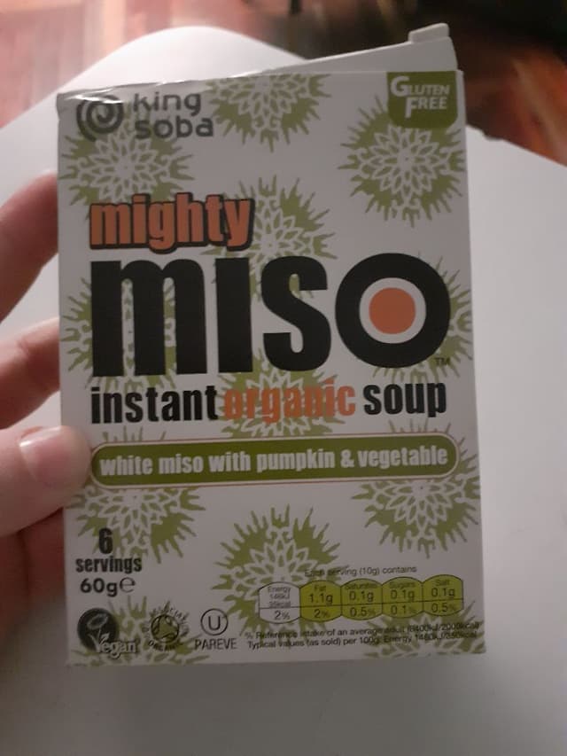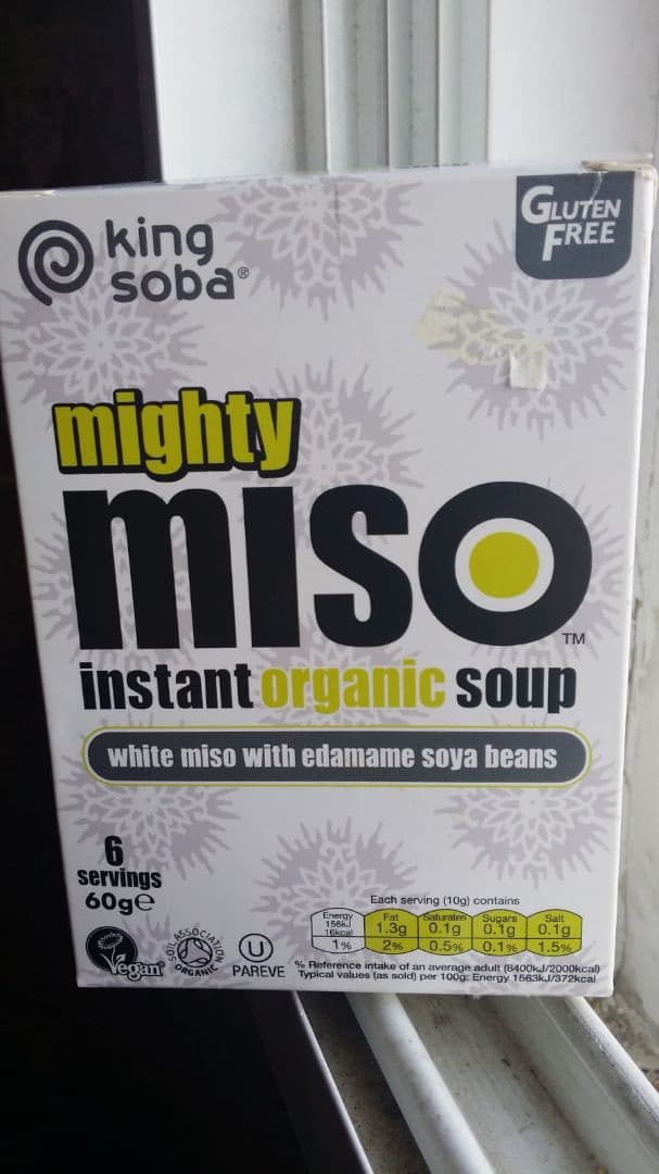 Sopa instantánea de miso con cebolla, cebolleta y salsa tamari. Se hace en pocos minutos y cada sobrecito tiene una buena cantidad para una sopa abundante. Si cueces unos noodles y los echas a la sopa te haces un ramen en un plis. Es de agricultura orgánica. No me acuerdo del precio exacto. #miso #misosoup #organic #ramen #instantfood #veganfastfood #abillionlove #abillionwomen #santuariovegan #seashepherd