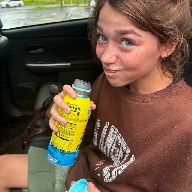 Because the kids were thirsty from a long drive and because it was clearly indicated Vegan 🌱 Friendly #clearlymarkedvegan #justbecauseitsvegan, I decided to overlook the poor nutritional content and quiet my oncophobia of aspartame to agree with this purchase. Aimée was thrilled #kidsapproved and I survived a sip of it (looked like windshield washer liquid) ! #goveganfortheanimals #goveganfortheplanet #veganenergydrink #vegantravel #veganroadtrip