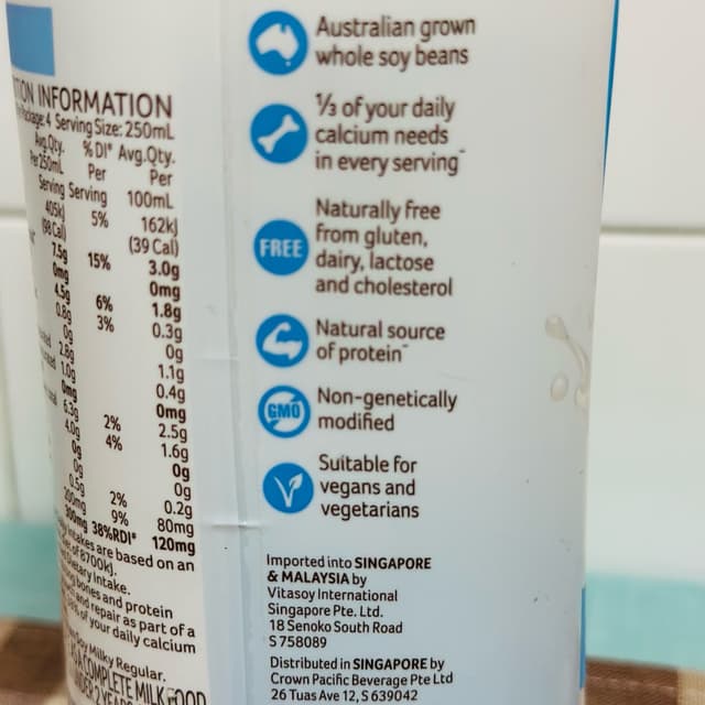 Works for me in my coffee 😁 This has a small amount of added sugar so it does add the slightest bit of sweetness. Protein (7.5g per cup) also looks good for soy milk! #soymilk Perpetually bugs me, however, that these plant milk cartons aren't recyclable here.