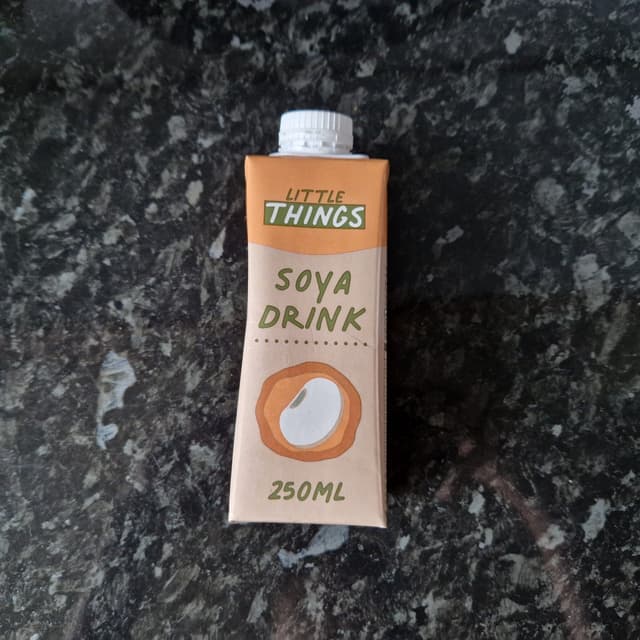 Soy milk in a cute little carton! I sometimes use this soy milk for baking or making hot chocolate, and I have no complaints either way. It works well as an ingredient and as a drink. Ingredient-wise, it has a few common additives, but the list is pretty short.