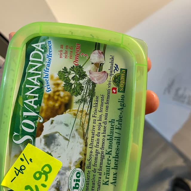 Formaggio spalmabile di soia alle erbe e aglio buonissimo, prezzo un po' alto