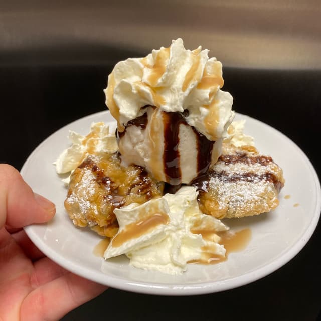 **off menu item** Fried Oreos & Vanilla Soymilk So Delicious Nice Cream topped with whipped cream, powdered sugar, and caramel and choccy syrup. One fateful Thursday my coworker and myself made magic in the 4th & State kitchen. Well, besides all of the signature items on their menu that is 😉 You can deep fry just about everything and oreos are no exception. Crunchy, chocolatey, and warm; they provide all the ideal tastes and textures to compliment the cold, soft, vanilla nice cream. They say opposites attract after all. Whipped cream, powdered sugar, syrups to garnish. This is a delicacy. One bite is enough to satisfy any sweet tooth, but maybe eat the whole thing ? off menu/10. (realistically 8/10).