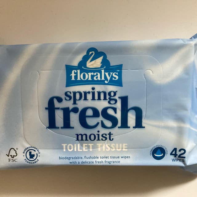 Moist toilet tissue, reduces the use of regular toilet tissue and is handy to keep in the purse. I is scented but very delicate.