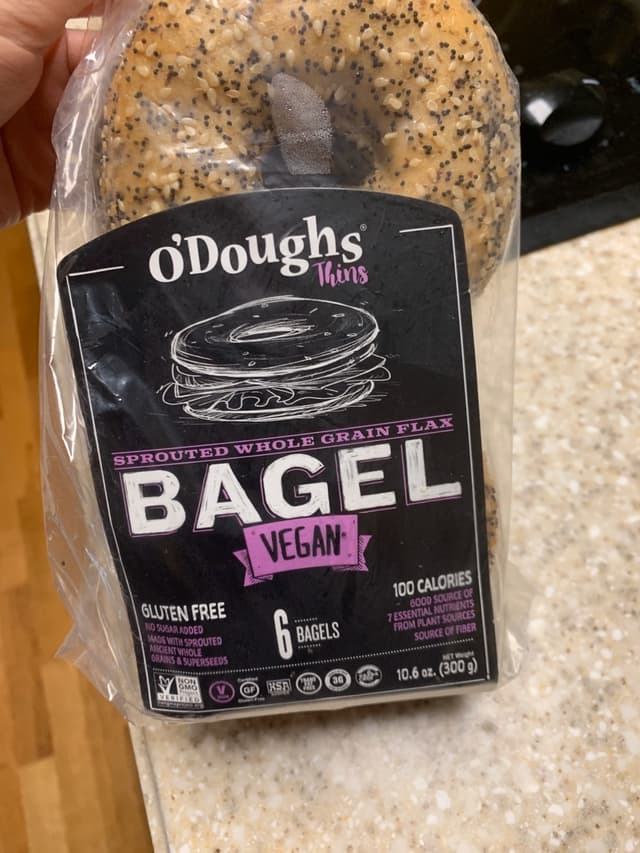These bagels are so good and they're really thin so you don't have to feel guilty about having a bagel as a mid-afternoon snack. Gluten free as well as vegan! A bit on the expensive side, but definitely worth it.