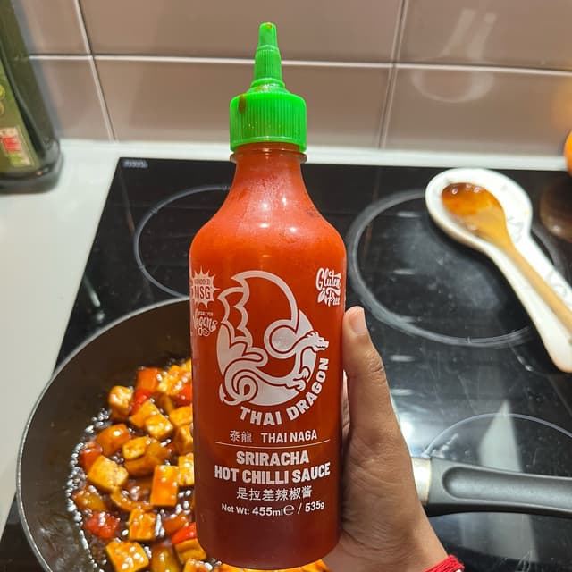 This is a nice, spicy sriracha. I added it to soy sauce and garlic powder and tossed cubbed tofu in the mixture. I then coated it with corn starch and threw it in the oven for about 50 minutes at gas mark 7. I think I added too much corn starch as it did crisp the tofu but also left the bottom slightly goopy. I’m no good at using corn starch 🤣